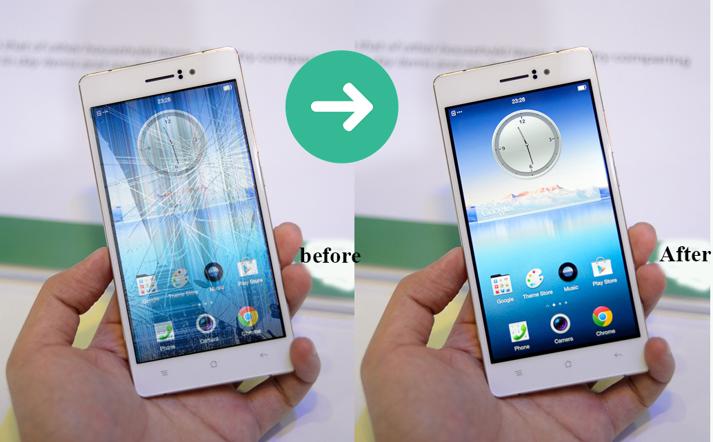 1 là, mặt kính của máy bị vỡ, cảm ứng và màn hình vẫn sử dụng như thường. Lúc này, bạn cần thay mặt kính Oppo R5 là có thể sử dụng lại như thường.